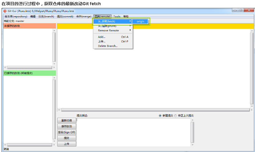 5、把服务器上最新版的代码fetch下来,然后跟自己的主分支合并。